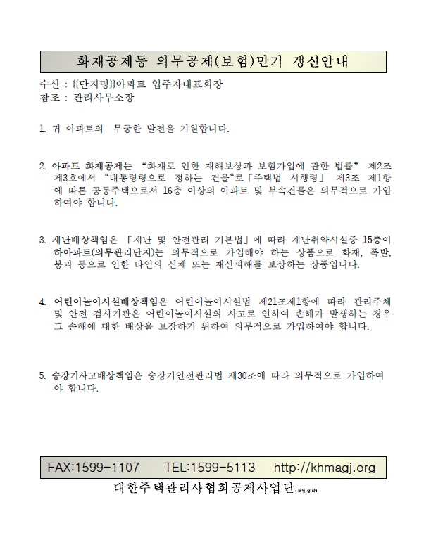 화재공제 등 의무공제(보험) 만기 갱신 안내2023-05-23 20:32:01.0