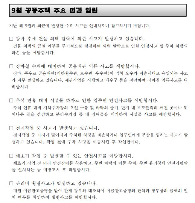 23년 9월 공동주택 주요 점검 알림2023-08-17 15:22:17.0